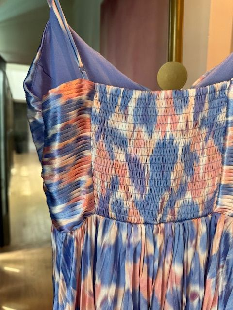 Astr The Label Blythe Blue/ Pink Tie-Dye Satin Maxi Dress