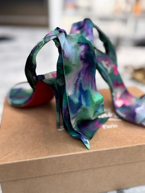 Made of vibrant satin, these 'Desert' Louboutin’s have a sandal silhouette with a lace-up ankle and stiletto heel. Wear yours with a slip dress for an effortless cocktail look.