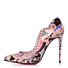 DETAILS: Christian Louboutin pump in fashion graphic-print leather, featuring curved topline. 4" stiletto heel. Pointed toe. Slip-on style. Leather lining and footbed. Signature red leather outsole.