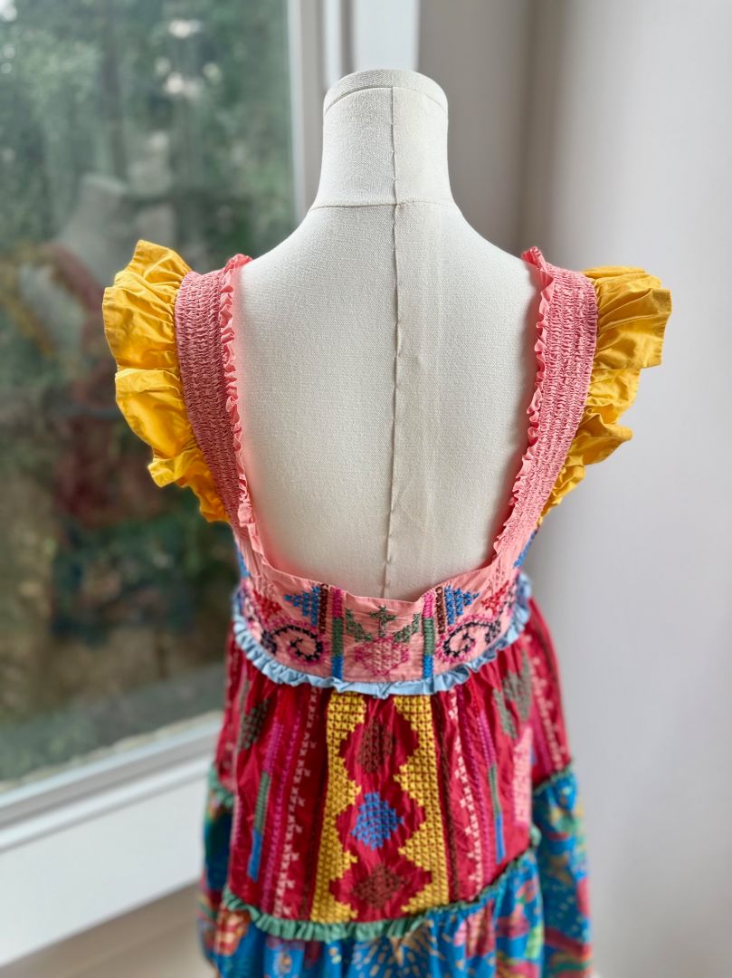 Farm Rio Color Block Embroidered Tropical Tiered Ruffle Mini Dress