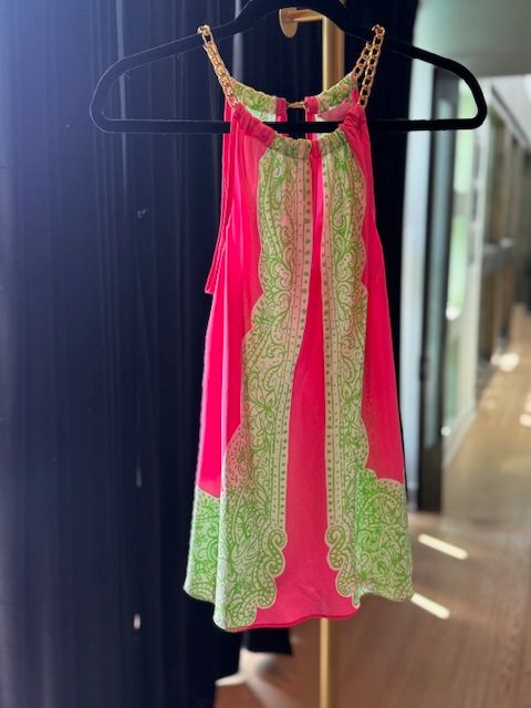 Lilly Pulitzer Women's XS 100% Silk Riviera Halter Top Hotty Pink Day Breaker